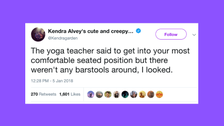 If you’ve found yourself in awkward situations during yoga class, you’re not alone. Here are 39 funny tweets about trying to get into yoga.