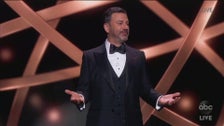 “You know how hard it is to get your parents to FaceTime? Multiply that by a lot,” Kimmel joked, before getting some hand sanitizer from an Emmy and showing a wall full of live feeds.