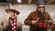 The duo donned disguises to perform the Christmas song “The Little Drummer Boy” to unsuspecting passersby at 50th Street station. (Fallon has pulled the same busking stunt with other stars before, so it’s likely that some commuters knew something was afoot).
