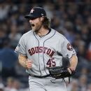 Fans erupted after a replay review changed Edwin Encarnacion’s infield hit leading off the eighth to a groundout. Houston went on to take a 2-1 lead in the best-of-seven series.