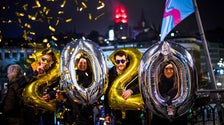 Hundreds of thousands of revelers were expected to ring in the New Year in front of the Brandenburg Gate in Berlin.