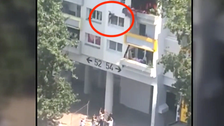 Dramatic footage, above, shows the younger boy being dropped out of a window of an apartment block in Grenoble, southwest France, on Tuesday.