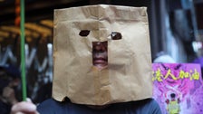 Many protesters who wore masks said Sunday the ban curtailed their freedom of expression. The ban applies to both illegal and police-approved gatherings, and carries a penalty of up to a year in jail and a fine.