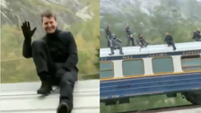 The stunt could be a reference to the climactic chase sequence in the first “Mission Impossible” film, in which Cruise’s Ethan Hunt faces off against the movie’s big bad on top of a speeding bullet train while, of course, being pursued by a helicopter.