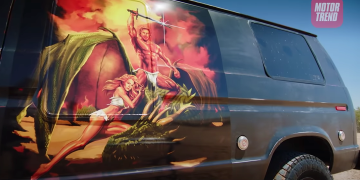 Shepard revealed on his show, the U.S. version of “Top Gear,” that he commissioned an artist to paint a wild portrait of himself and his wife on a van. The image is an homage to the 1977 Chuck Norris movie, “Breaker! Breaker!”