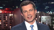 Former Democratic presidential candidate Pete Buttigieg stood in for Jimmy Kimmel on Thursday’s broadcast of his late night show (as Kimmel filmed “Who Wants To Be A Millionaire?”).