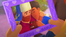“Out,” directed by Steven Clay Hunter, was unveiled Friday as part of the Disney+ SparkShorts series. The animated film follows Greg (voiced by Kyle McDaniel), who is about to move in with his boyfriend, Manuel (Caleb Cabrera).