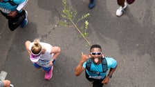 Activist and treegrower Siyabulela Sokomani, who is running carrying a wild olive, said the group of friends is raising cash to plant 2,000 trees in Khayelitsha, one of Cape Town’s biggest townships, where many of them come from.